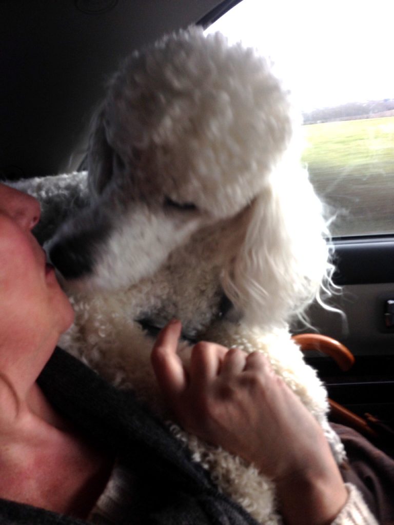 No pictures this time, only of Hortense (standard poodle) who decided to give me a kiss!