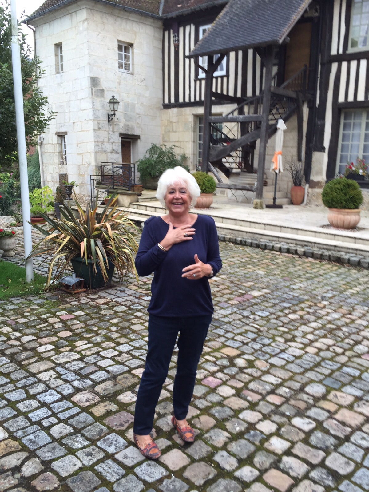 We decided to break our journey back home at Orbec, a small town in the heart of Calavados country.  A very weird place, stuck in time with gorgeous medieval buildings, some empty shops and then very posh shops!  The resident drunk was singing on the corner swigging rose! We stayed with a french version of Mrs Slocombe (Are you Being Served) in an old farm house just in the centre of Orbec.  It was great for dogs as there is a contained garden so they can run free and she positively encourages it.